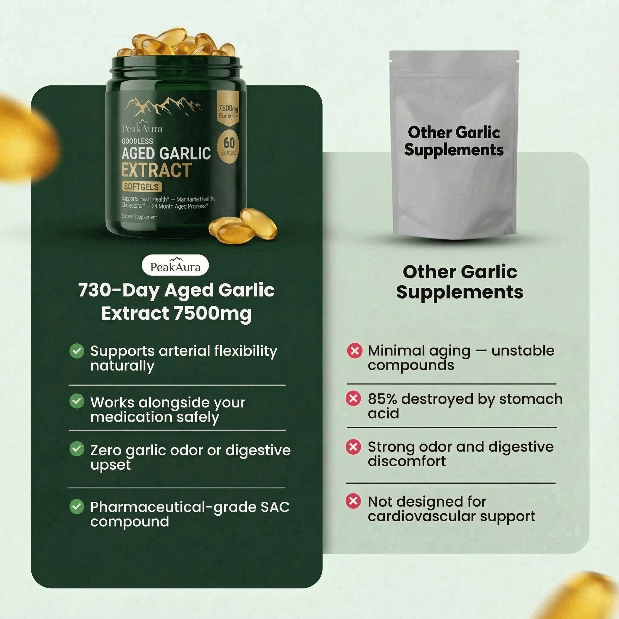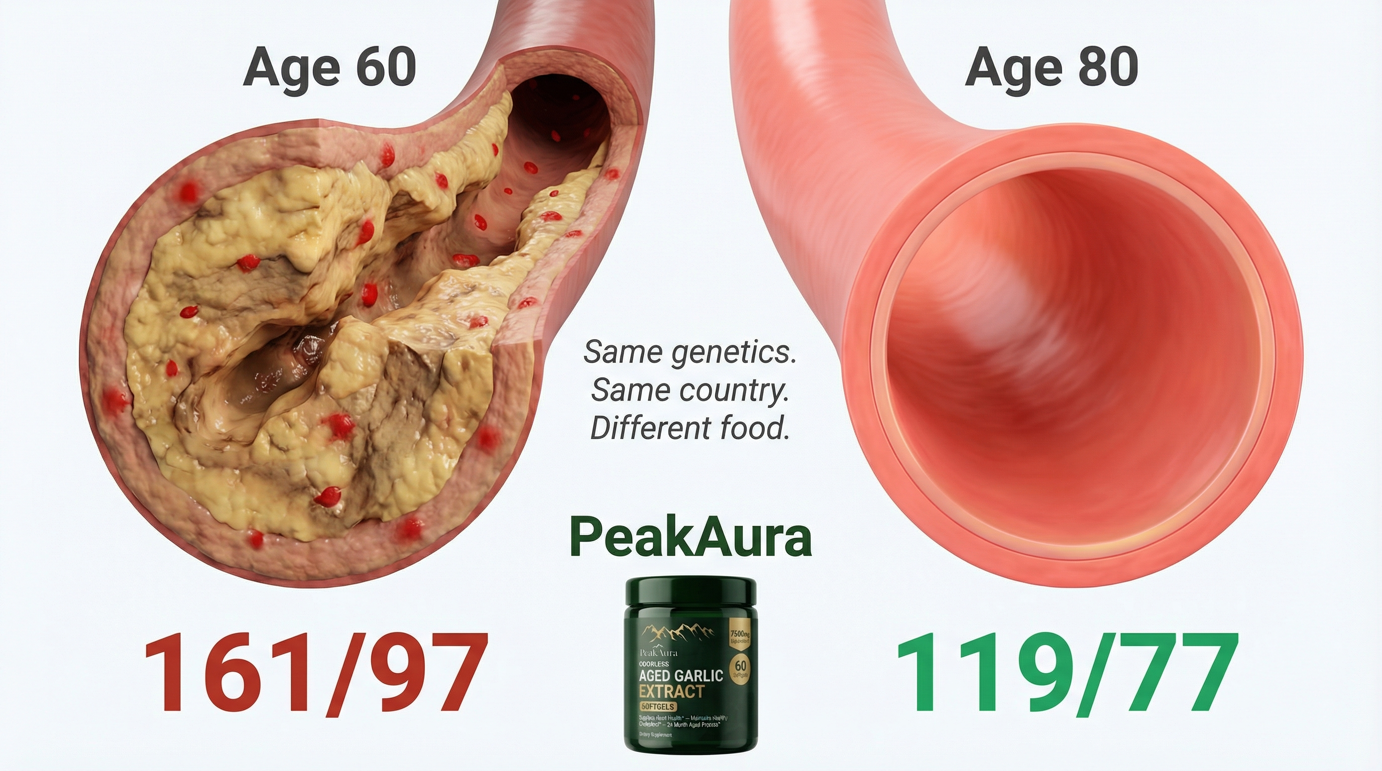 PeakAura 730-Day Aged Garlic Extract focuses on naturally restoring the arterial flexibility your medication can't address.